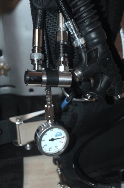 Beim tauchen entsteht dadurch aber gelegentlich die Situation, dass der ppo2 zu stark ansteigt. Hier muß man entweder einfach die o2 Flasche zudrehen und später wieder öffnen oder auf eine Düse mit weniger Durchsatz wechseln.