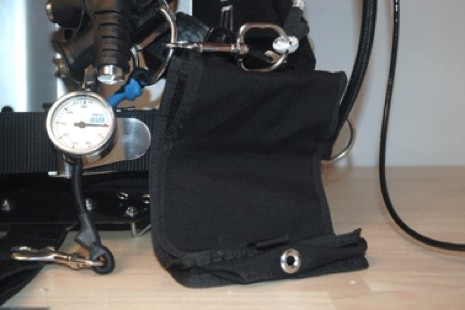 Die Argonflasche habe ich mit einer schlanken Adapterschiene (die Gleiche, wie für die Sidemount Version) an die Diluentflasche gebaut. Da ich die Stages im Sidemountsetup tauche, passt die Argonflasche nicht unter den Arm (an innere Backplate). Am rechten Bauchgurt ist das Messer und der Linecutter und am linken eine Tasche für alles, was nicht in den Beintaschen ist 🙂